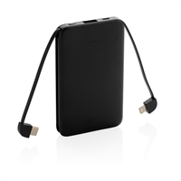 Ultra platte 10.000 mAh powerbank gemaakt van ABS die gemakkelijk overal mee naartoe te nemen is. Met de 3 in 1 geïntegreerde kabel is de powerbank compatibel met alle mobiele apparaten die op de markt zijn en direct klaar voor gebruik. Als deze volledig