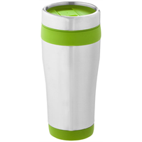 Geïsoleerde beker met schroefdop en schuiflipje. Inhoud 400 ml. Roestvrijstaal, Plastic.