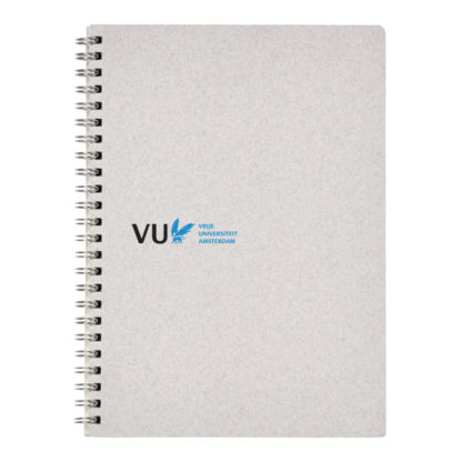 A5-formaat Wire-O notitieboek met een FSC-gecertificeerde kaft die katoenafval (15%) en van de consument afkomstig gerecycleerd afval (40%) bevat. Bevat 80 vellen, 80 g/m2 100% FSC-gerecycleerd papier met een gestippeld raster. De gestippelde lay-out combineert de voordelen van gelijnd, blanco en geblokt papier door structuur te bieden en tegelijkertijd creativiteit te stimuleren. Hierdoor is dit notitieboek geschikt voor een groot aantal gebruikers. Dankzij de spiraal kan het notitieboek handig plat liggen en gemakkelijk worden dichtgevouwen. Gemaakt in Italie. Katoen.