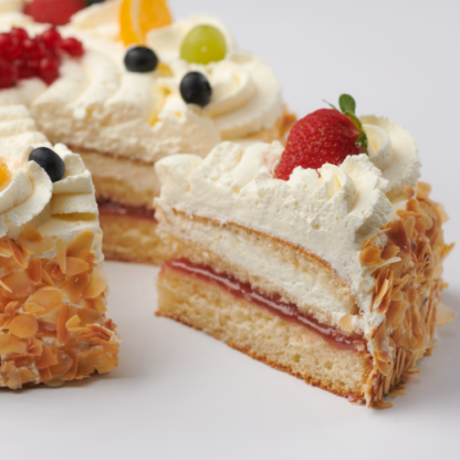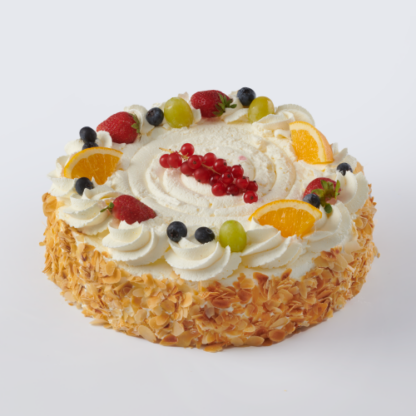 Deze taart is perfect voor tal van gelegenheden, zoals een verjaardag, jubileum of zakelijk event. De taart is gemaakt met de fijnste ingrediënten en heeft een perfecte balans van smaken. De zachte, romige slagroom smelt in je mond en wordt gecombineerd met een subtiel zoete bodem. De taart is versierd met vers fruit en heeft een frisse fruitige vulling. Of je nu een klein gezelschap of een grote groep verwelkomt, deze taart zal zeker indruk maken. Bestel nu deze fruitige ronde slagroomtaart en trakteer jezelf en je gasten op iets speciaals.