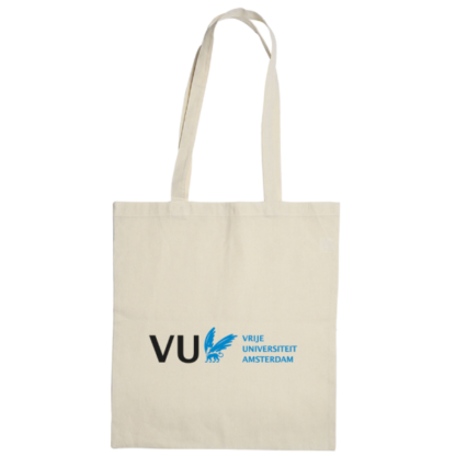 Madras katoenen draagtas bedrukt met VU logo en met open hoofdvak. Draaghoogte 26 cm. Katoen 140 g/m²