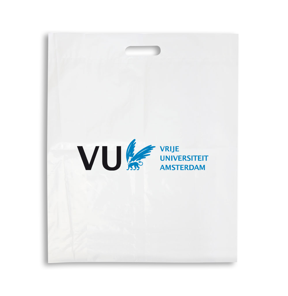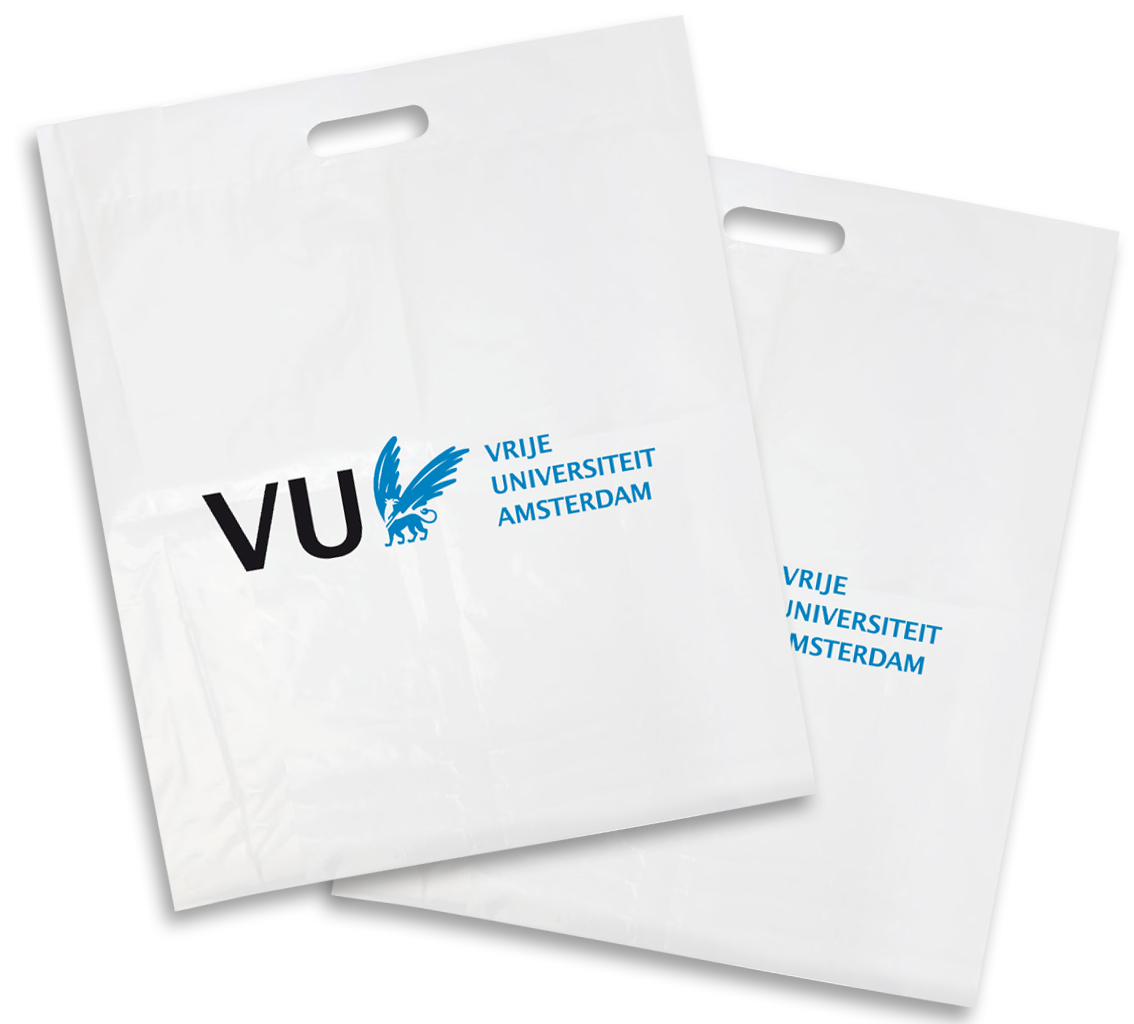 Deze plastic tasjes met aan de ene kant het Nederlandse logo en aan de andere kant het Engelse logo zijn een goede reclamedrager, zodat niemand het VU logo kan ontgaan. Prijs per set van 100 stuks. Direct leverbaar.