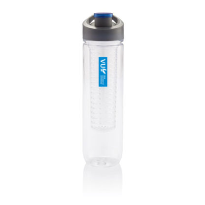 800ml tritan fles met fruit infuser compartiment. Geef water volop vitaminen en smaak door vers fruit toe te voegen in het compartiment, dat ook als koelelement gebruikt kan worden door ijsklontjes toe te voegen. Richtprijs bij 250 stuks: 8,00 per stuk ex btw. Levertijd ca. 2 weken. U kunt met de knop rechts in het scherm uw offerte aanvragen. Deze ontvangt u binnen 24 uur.